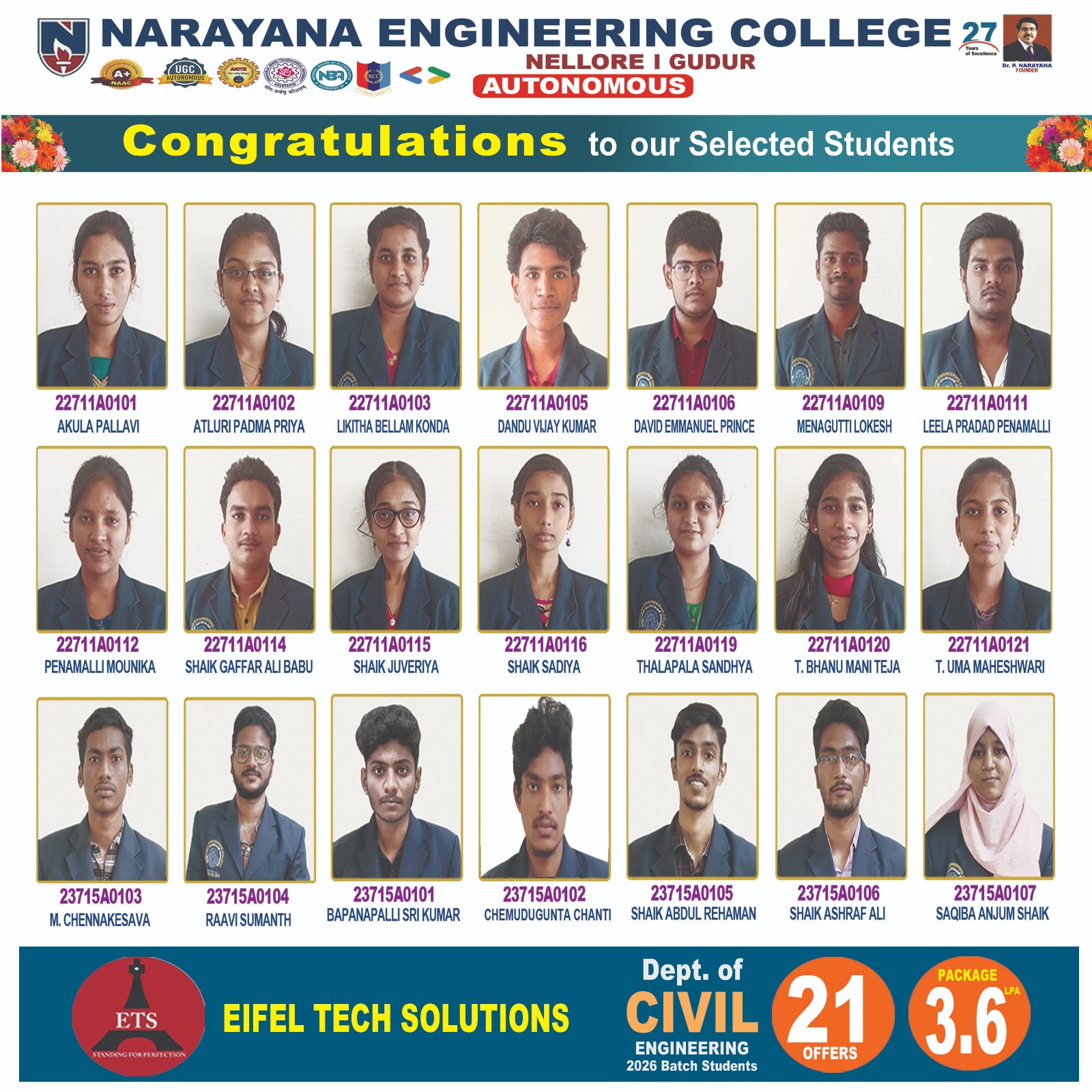 Narayana Engineering College, Nellore, AP (NECN) was